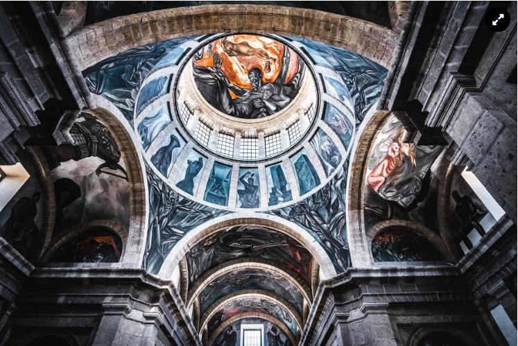 Between 1936 and 1939, Jalisco-born muralist José Clemente Orozco painted 57 frescoes across the chapel’s walls, arches, and soaring dome, creating what many call “the Sistine Chapel of the Americas.” The centerpiece is El Hombre en Llamas (The Man of Fire), a flaming optical illusion painting on the dome that seems to follow you as you move. The only other building that has given me such a feeling of being both grounded and dizzy is the M.C. Escher Museum in The Hague. Seemingly, the longer you stare, the more Orozco’s flames dance.